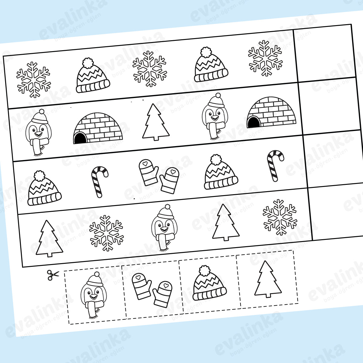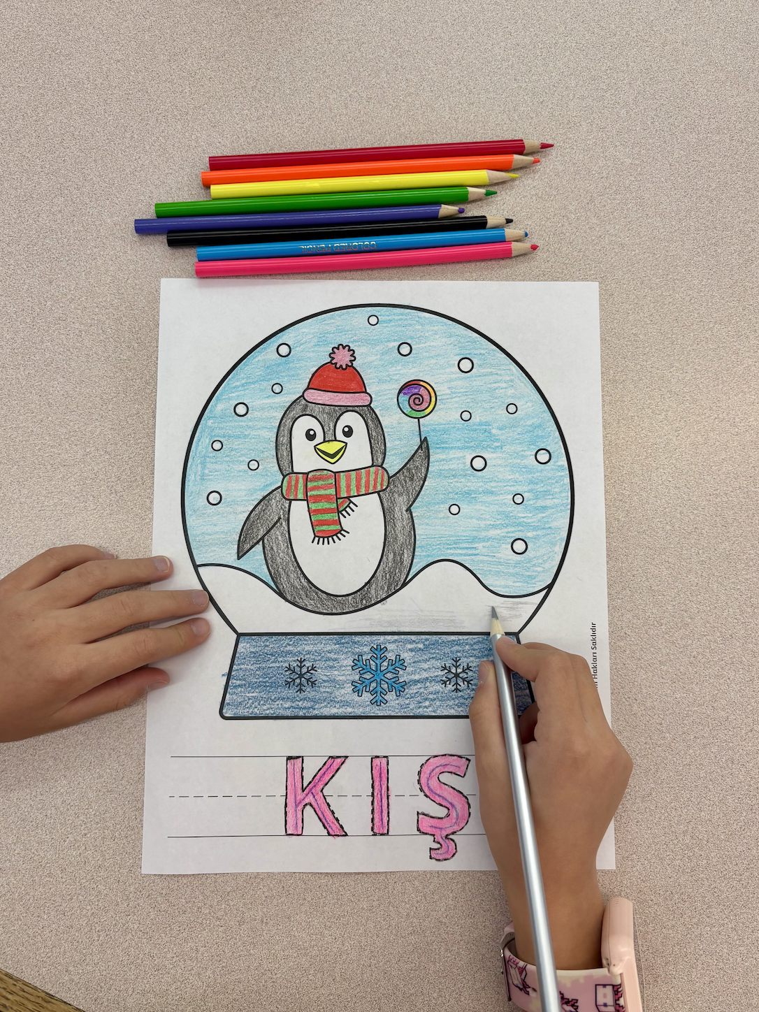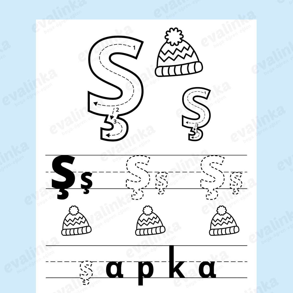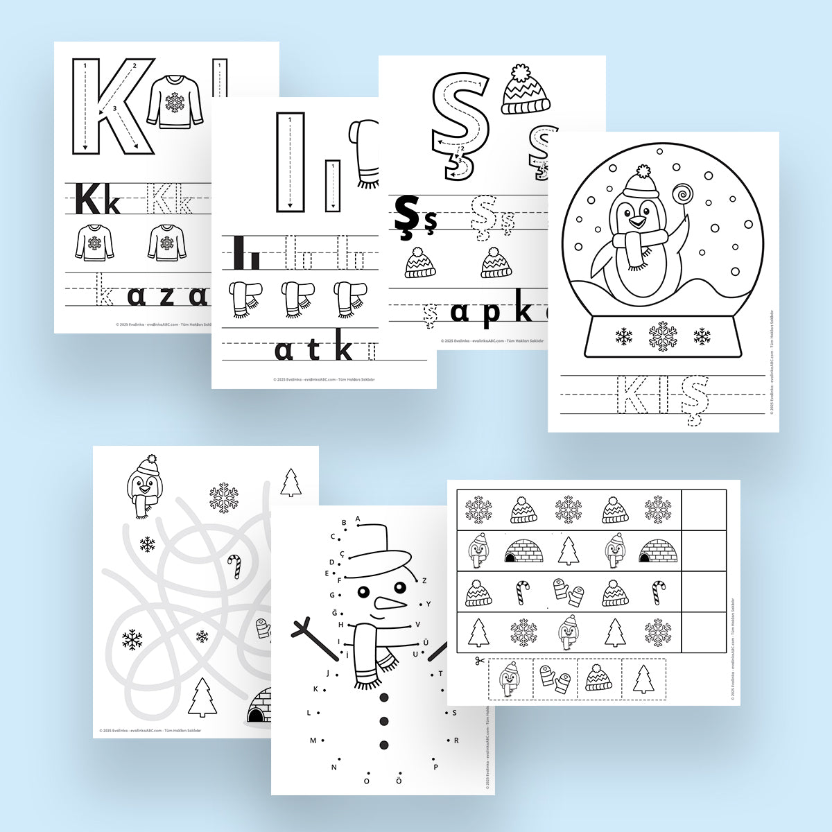 Kolayca indirip ev veya iş yerinizde yazdırabileceğiniz bu eğlenceli "KIŞ" temalı paket çocuklara hem keyifli boyama etkinlikleri sunuyor hem de "k", "ı" ve "ş" harflerini pratik yapmalarını destekliyor.